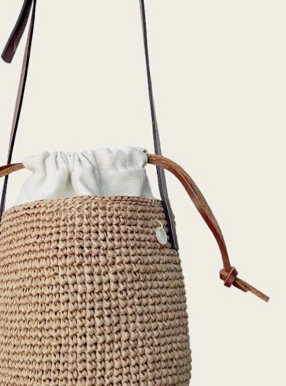 Cartera tejida en rafia a mano con base de espartillo (fibra natural) strap en cuero de largo rgulable