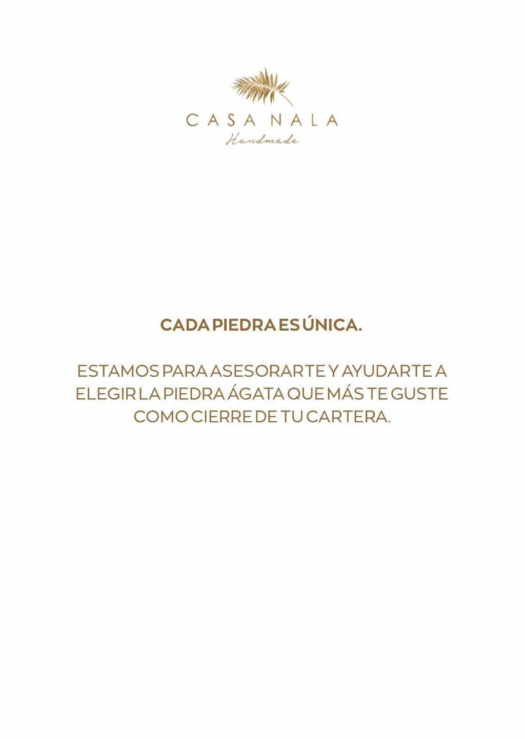 Cartera de rafia tejida que sobre su cierre imantado, lleva una pieza de lonja mineral de Agata natural única y exclusiva para cada cartera. La cartera esta tejida a mano sobre una base realizada en cuero y su cadena en metal dorado es extraíble.