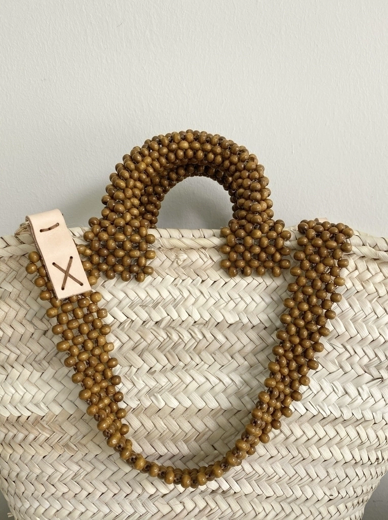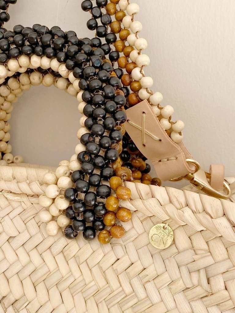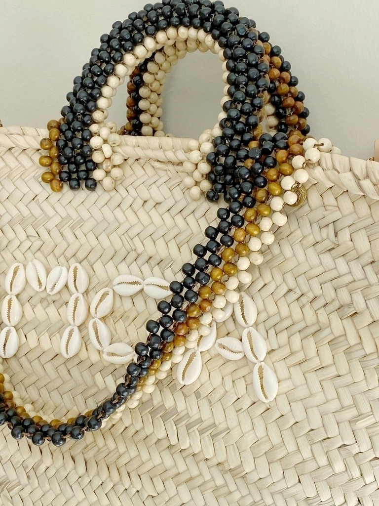 Bolso de paja tejido a mano con manija y strap para llevar al hombro hecha en cuentas . Con sobre desmontable hecho en palma en su interiory con asa para llevar a donde quieras personalízala con tus iniciales Tamaño( aproximado) 53ancho x38 alto x25 profundidad