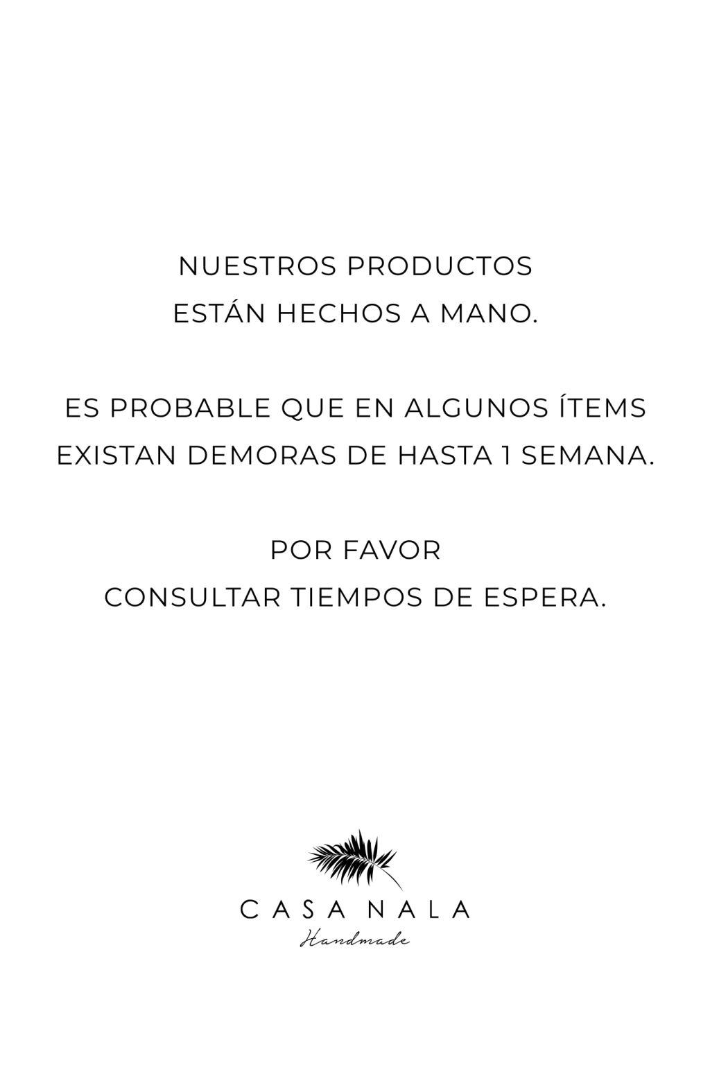 Tejida a mano en rafia utilizando la técnica de crochet con correa en cuero de largo regulable y tapa de cuentas de madera